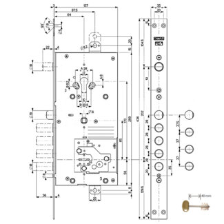 54J936M-S Mottura (Моттура) Замок врезной двухсистемный MyKey левый, ключ 40 мм