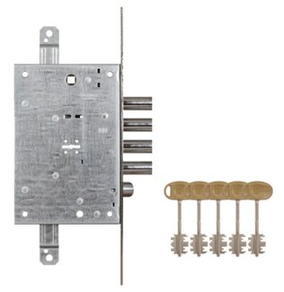 Mottura (Моттура) Замок врезной 52.771 , с тремя точками запирания и защёлкой диаметром 20мм, приводимой в действие ключом и фалевой ручкой сечением квадрата 8мм. Удаление ключевого отверстия и ручки 60мм. Круглые ригеля диаметром 18мм. Ход тяг 19мм.